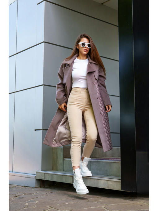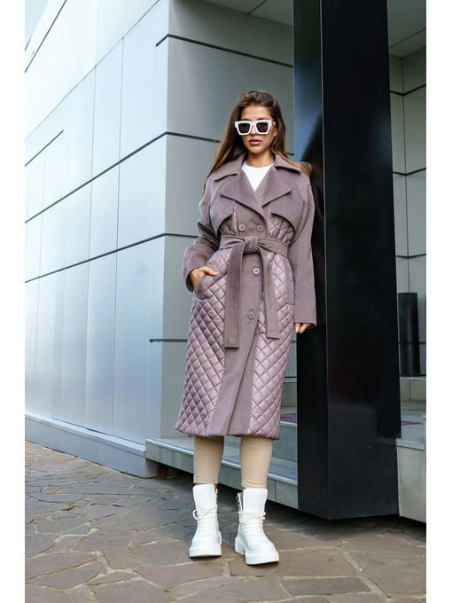 Демисезонное комбинированное пальто из кашемира и стеганной плащевки.