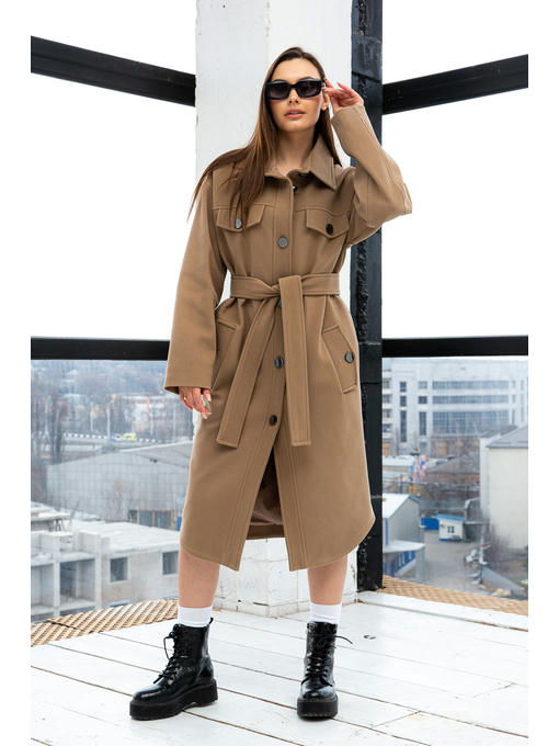 Демисезонное пальто рубашечного кроя из кашемира.