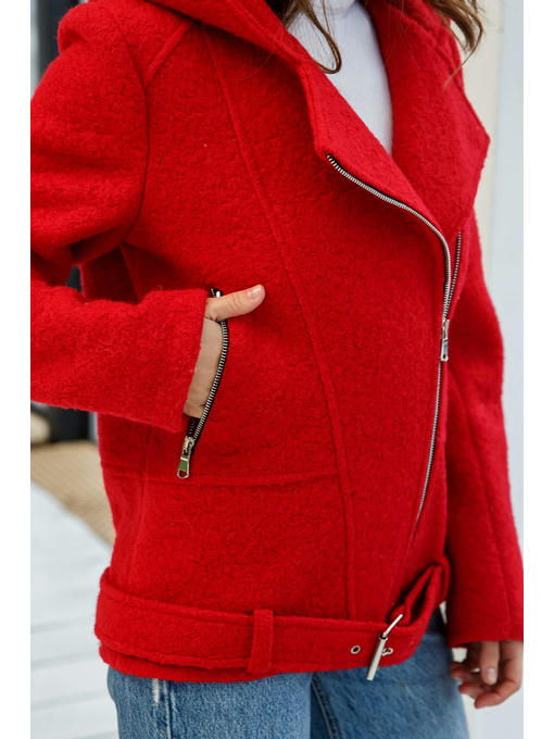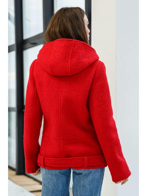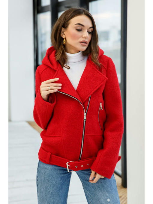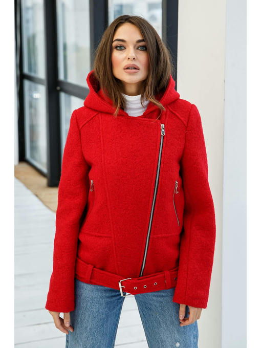 Демисезонное пальто— косуха, выполненное из буклированного кашемира с объёмным капюшоном.