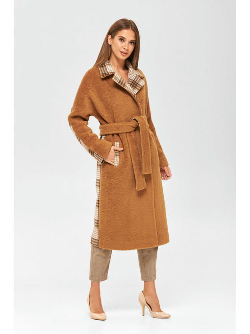 Демисезонное комбинированное пальто из альпаки и пальтовой ткани клетка.