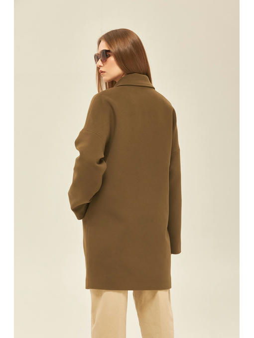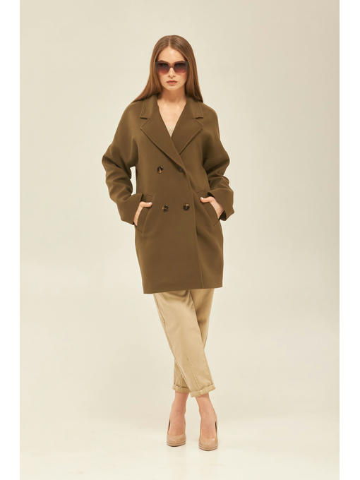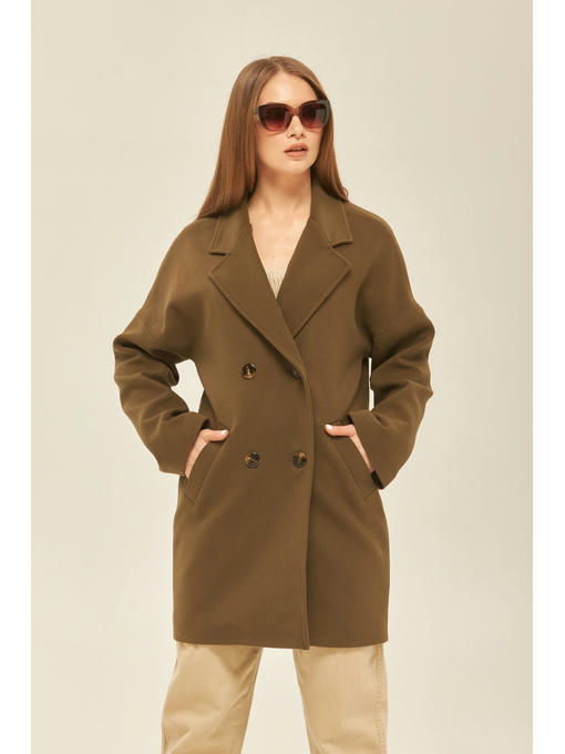 Демисезонное укороченное пальто фасона оверсайз с английским воротником.
