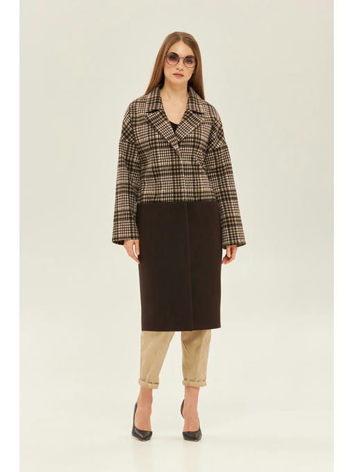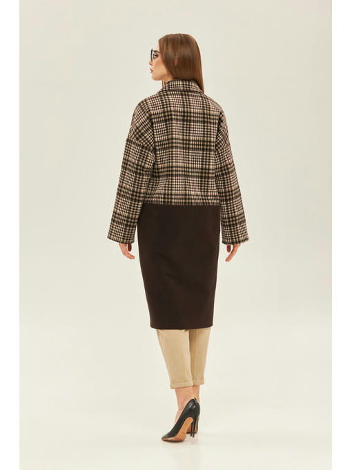 Демисезонное пальто из пальтовой клетки и кашемировой отделкой