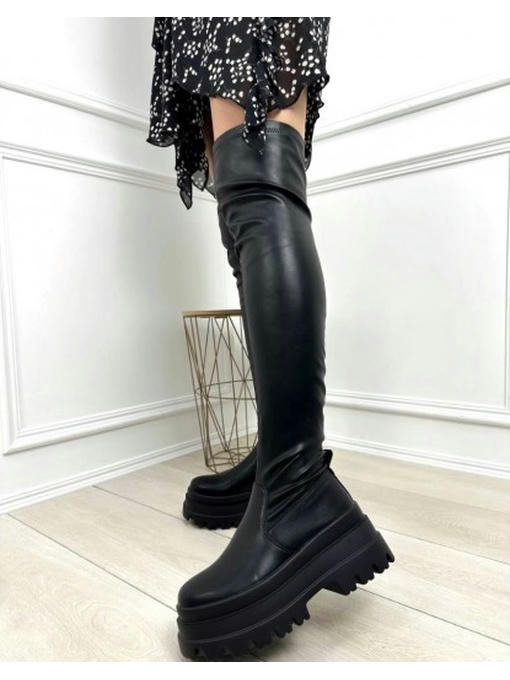 Демисезонные ботфорты чулки на высокой тракторной подошве. Высота подошва сзади: 7,5 см.; Спереди: 5,5 см.; Высота от пятки: 60 см.; Размерная сетка: 36-23,5 37-24; 38-24,5; 39-25; 40-26; 41-26,5 см.