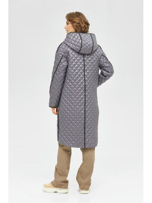 Демисезонный стеганный плащ с капюшоном с контрастной отделкой.