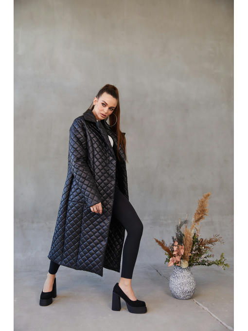 Двубортный стеганый плащ из плащевой ткани с водоотталкивающим эффектом.