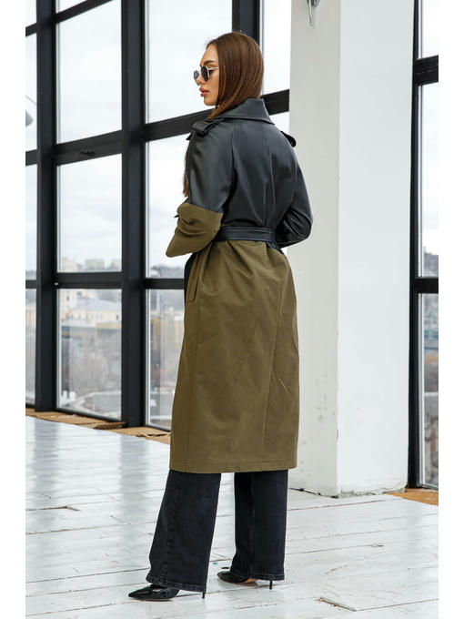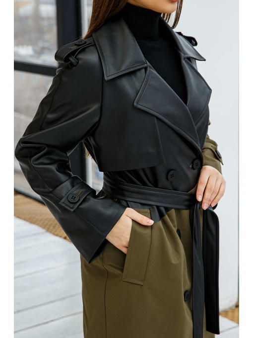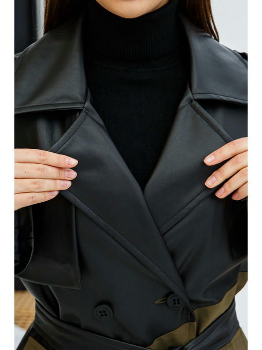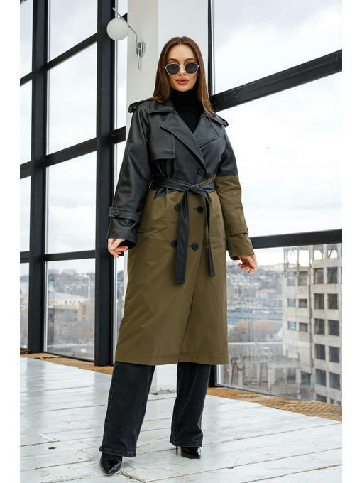 Демисезонный комбинированный классический тренч из эко— кожи и коттона.