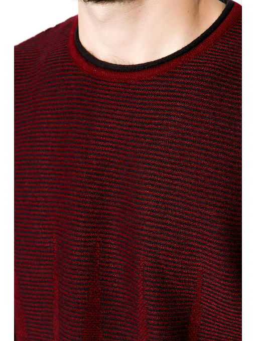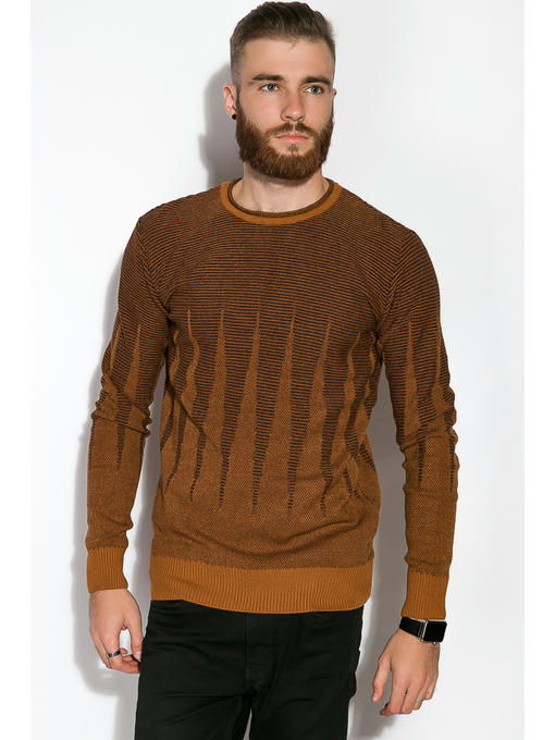 Стильный мужской свитер, декоративно оформлен оттенком вязки с переходом от пояса и манжет рукавов, а также по горловине изделия. Пряжа, состоящая на 50% из натуральной шерсти, обеспечивает тепло и комфорт в прохладное время года.
