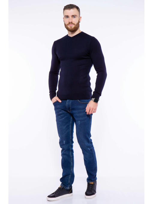 Лёгкий, базовый мужской свитер с V образной горловиной имеет в своем составе натуральную шесть в сочетании с акрилом, что положительным образом отражается на функциональных и тактильных свойствах изделия, обеспечивая тепло, комфорт и долговечность.