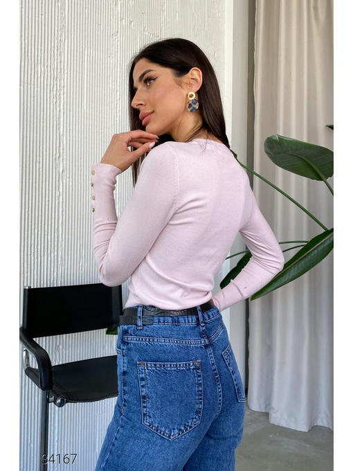Джемпер облегающего кроя из качественного материала, производства Турции. Круглый вырез, эластичные манжеты в рубчик с декоративной планкой из пуговиц, нижняя кромка в рубчик. Состав ткани: 70% – коттон, 25% – вискоза, 5% – эластан. Размер универсальный, подходит на 42 – 46.