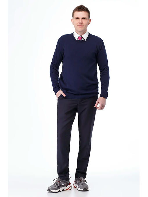 Джемпер для мальчика из мягкого трикотажа. Джемпер с длинными рукавами, с круглым вырезом горловины. Горловина окетлевана бейкой. По низу рукавов и низу изделия имеется цельновязанный эластичный манжет. Такой джемпер отличный вариант как для повседневных, так и для школьных дней
