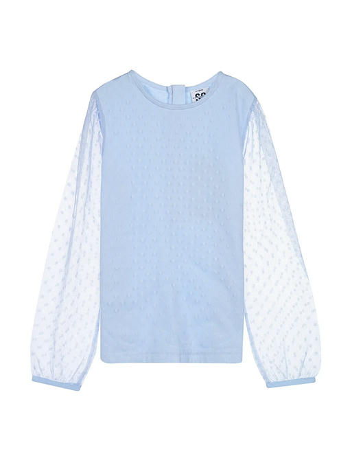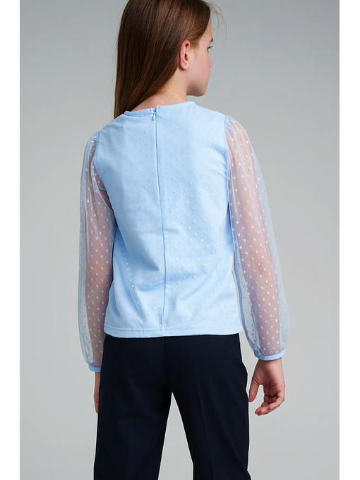 Джемпер полуприлегающего силуэта. Эластичная резинка по низу рукавов. Застежка сзади на потайную молнию. Материал верха – сетка. Подкладка из трикотажа джерси с высоким содержанием хлопка 95%