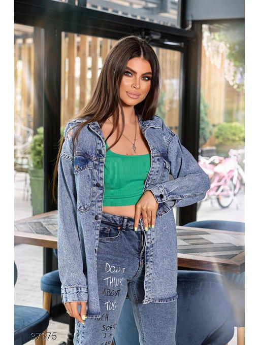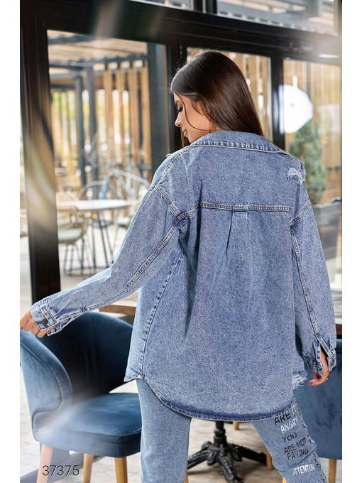 Джинсовая куртка. Застегивается на металлические пуговицы.