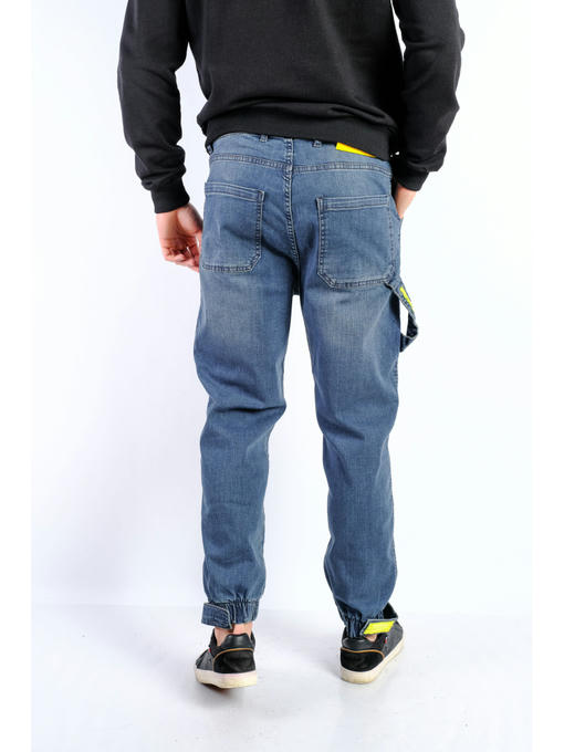 Стильные мужские джинсы с расположенной на правой штанине петлей в стиле «сarpenter», выполнены из качественного хлопкового denim с добавлением небольшого процента лайкры и эффектом потертости. Дополнительный комфорт обеспечивают большие задние карманы и эластичные манжеты по низу штанин с фиксирующей застежкой. Данная модель прекрасно подходит мужчинам, которые предпочитают стиль casual и ведут активный образ жизни.