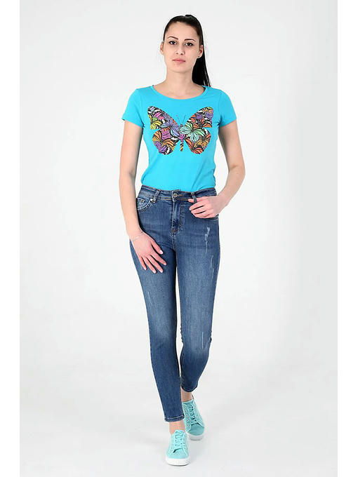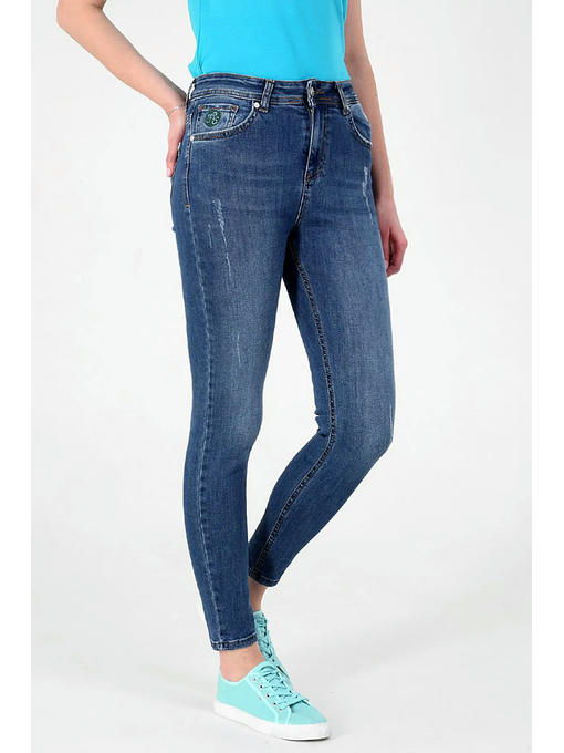 Женские классические джинсы с пятью карманами. Посадка Skinny fit (сильно облегающие по бедру). High waist – высокая талия. Для улучшения посадки сделан подкройной пояс из 2-х частей. Застежка на молнии. Узкие по всей длине и внизу. Темная стирка со слабовыраженными “усами” спереди и потертостями. Выполнены из эластичной ткани denim stretch. Спереди и на задних карманах несколько локальных повреждений (damages). Модная фурнитура ограниченной серии. Параметры указаны для размера 28