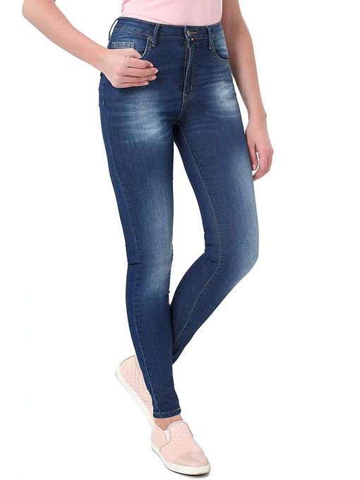 Женские классические джинсы с пятью карманами. Посадка Skinny fit (сильно облегающие по бедру). Специально завышенная талия. Для улучшения посадки по талии сделан подкройной пояс из 2-х частей. Застежка на молнии. Узкие по низу. Выполнены из эластичной ткани denim stretch. Средняя стирка с потертостями и “усами” спереди и сзади. Параметры указаны для размера 28