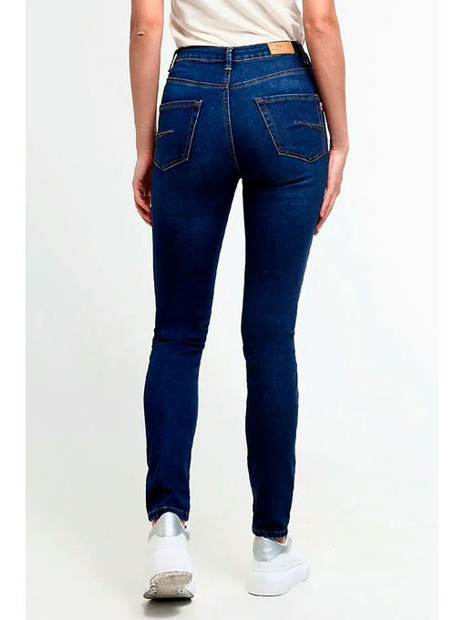Женские классические джинсы с пятью карманами. Посадка Slim fit. Специально завышенная талия. Для улучшения посадки по талии сделан подкройной пояс из 2-х частей. Застежка на молнии. Узкие по низу. Выполнены из мягкой эластичной ткани denim stretch (эластичность 40%). Темная стирка с потёртостями спереди и сзади. Параметры указаны для размера 28. Длина шагового шва для роста 32 – 79 см, для роста 34 – 84 см