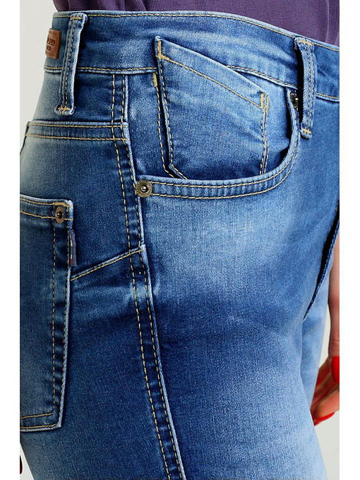 Женские модные джинсы с пятью карманами. Посадка Skinny fit (сильно облегающие по бедру) с высокой талией . Специальная конструкция задних половинок для создания эффекта “Push up”. Застежка на молнии. Узкие по низу. Выполнены из эластичной ткани denim stretch. Классическая средняя стирка с потертостями и “усами”спереди и потертостями сзади. Параметры указаны для размера 28