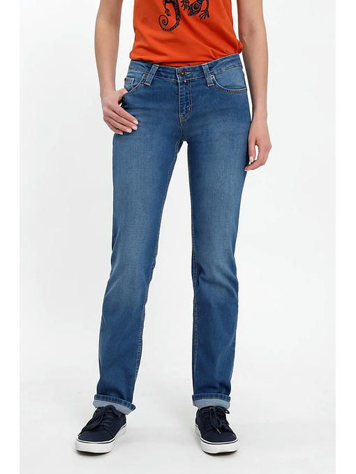 Женские классические джинсы с пятью карманами. Посадка Regular fit (полуоблегающие по бедру). Для улучшения посадки по талии сделан подкройной пояс из 2-х частей. Средняя высота талии. Застежка на молнии. Немного зауженные к низу. Выполнены из слабоэластичной ткани denim comfort stretch. Средняя стирка с потёртостями спереди и сзади. Параметры указаны для размера 28