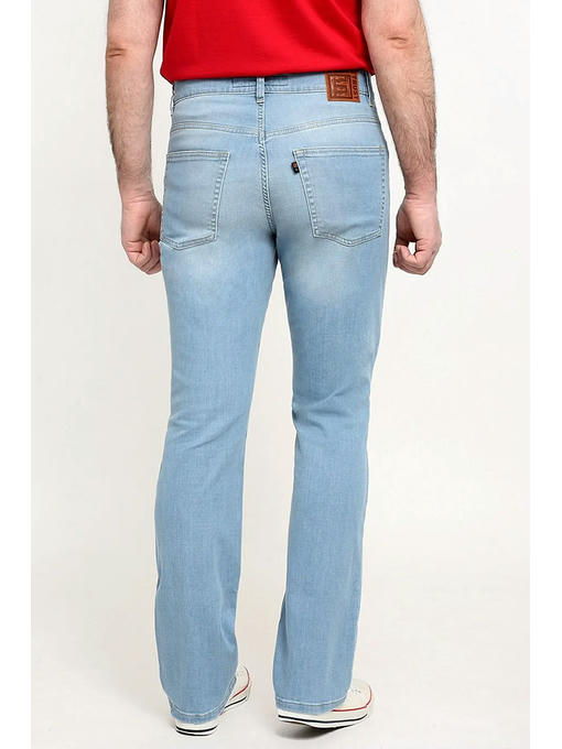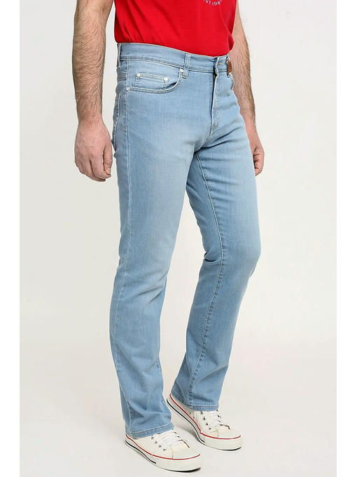 Мужские классические джинсы с пятью карманами. Посадка Regular fit (полуоблегающие по бедру), высокая талия. Застежка на молнии. Немного дополнительно заужены в колене и по низу по сравнению с моделью 0965. Выполнены из ткани denim comfort stretch. Классическая средняя стирка с потёртостями и “усами” спереди и потёртостями сзади. Параметры указаны для размера 32