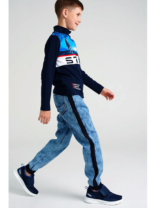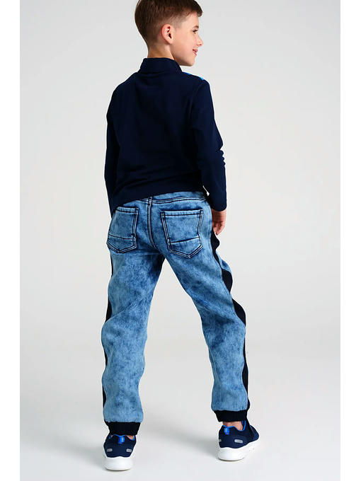 Джинсы, утепленные флисом. Посадка comfort fit – свободный крой брючин. Эластичный пояс со шнурком. Манжеты на резинке