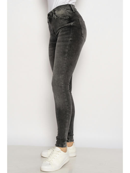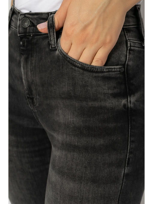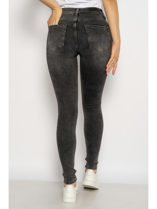 Стильные женские джинсы фасона skinny выполнены из качественного хлопкового denim темно серого цвета с добавлением эластана. Благодаря такому составу изделие обеспечивает элегантную и не стесняющую движений посадку по фигуре. Легкие декоративные потертости выгодно дополняют общее настроение модели.