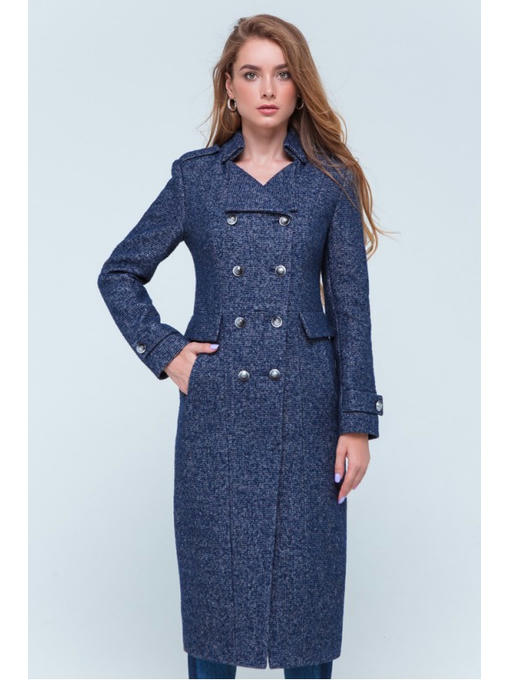 Длинное твидовое пальто сделано в стиле милитари. Для изготовления пальто приталенного кроя использован твид – практичная ткань.