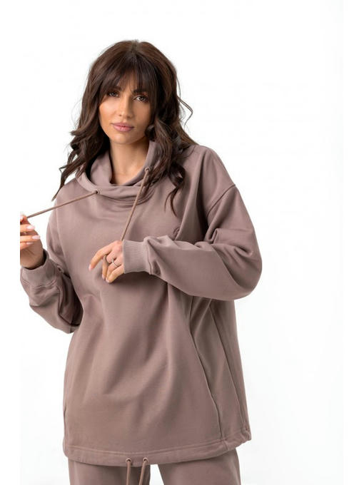 Длинное худи с капюшоном – теплая, удобная одежда, которая впишется в любой гардероб. Модель свободно ложится на тело, ткань-трехнитка плотная, качественная, очень приятная на ощупь. По низу однотонного худи находится кулиска со шнурком. Благодаря кулиске можно красиво подвязать худи. Внизу спущенных рукавов вставка из рибаны – трикотажной резинки. Модель имеет удобный капюшон на кулиске с продетым шнурком. Худи с капюшоном классно миксовать со спортивными брюками типа палаццо или джогеры, чтобы получить полноценный спортивный образ.