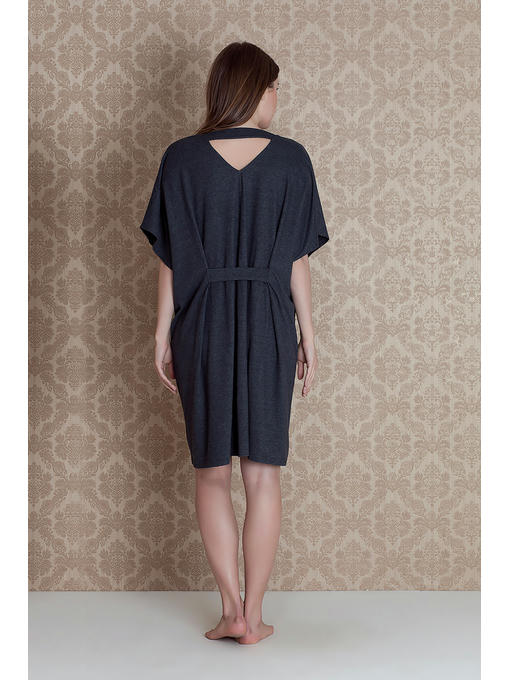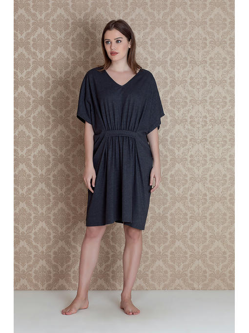 Длинная приталенная туника больших размеров Модель с V-образным вырезом спереди и сзади. Сзади вырез декорирован горизонтальной планкой шириной 4 см. Туника из однотонного хлопка с короткими цельнокроенными рукавами. Спереди на поясе выполнена вставка эластиной резинки длиной 20 см, которая спрятана за элегантной планкой такой же длины и шириной 4 см. Сзади туника декорирована симметричной планкой на поясе. Благодаря своему силуэту туника сильно стройнит и идеально садится на любую фигуру.