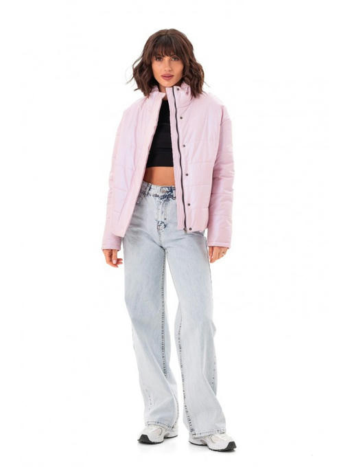 Дутая куртка легкая, теплая и практичная. Верх – плащевка, наполнитель – силикон. Воротник-стойка. Короткая куртка со спущенным плечом, свободным кроем по груди. Есть прорезные карманы с листочкой. Модель застегивается на молнию и кнопки, скрытые под планкой. По куртке проходят горизонтальные строчки.