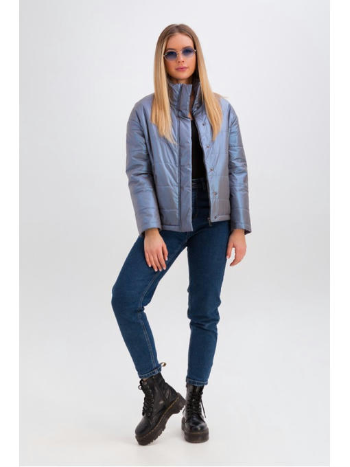 Дутая куртка легкая, теплая и практичная. Верх – плащевка, наполнитель – силикон. Воротник-стойка. Короткая куртка со спущенным плечом, свободным кроем по груди. Есть прорезные карманы с листочкой. Модель застегивается на молнию и кнопки, скрытые под планкой. По куртке проходят горизонтальные строчки.