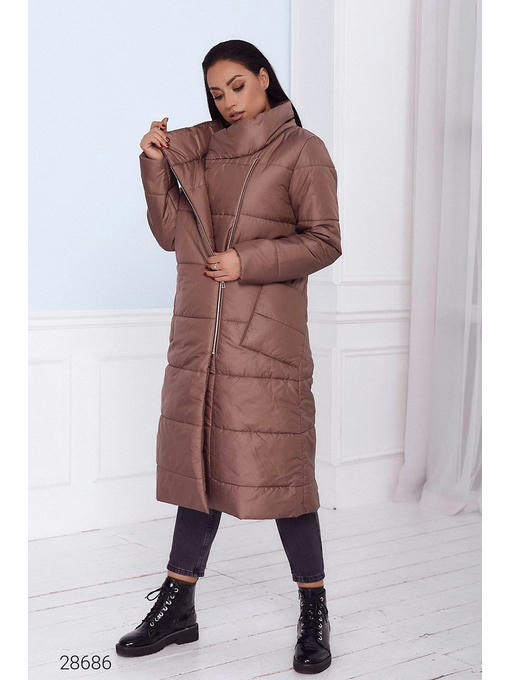 Удлинённая куртка с накладными карманами. Ворот – стойка, есть подкладка, застёжка на молнию.