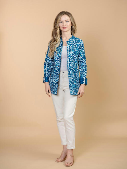 Жакет двусторонний стеганый женский (Индия). Выполнен из хлопка. Длина 70 см, 2 внешних кармана, рост модели 168 см.