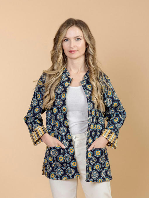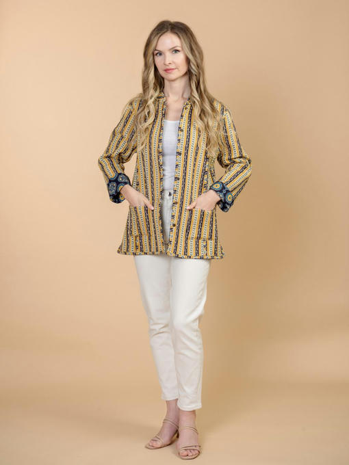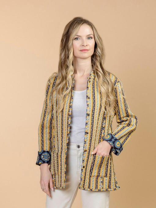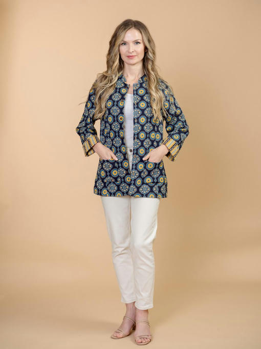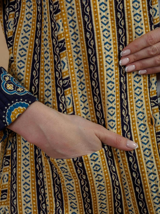 Жакет двусторонний стеганый женский (Индия). Выполнен из хлопка. Длина 70 см, 2 внешних кармана, рост модели 168 см.