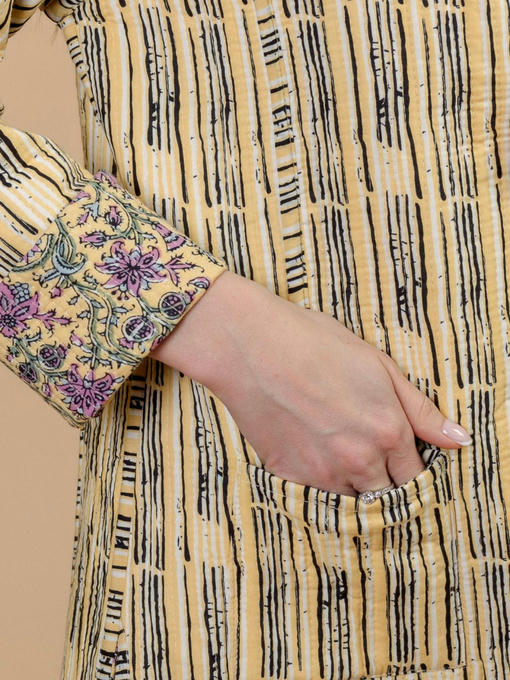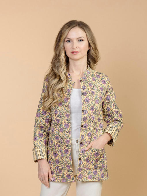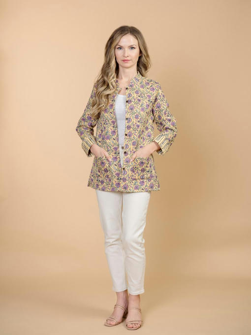 Жакет двусторонний стеганый женский (Индия). Выполнен из хлопка. Длина 70 см, 2 внешних кармана, рост модели 168 см.