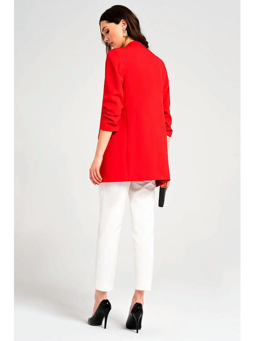 Стильный модный жакет в стиле “кэжуал”. Это повседневный удобный и практичный жакет, который отлично сочетается как с джинсами, так и с брюками. Жакет удлиненный, без застежки, рукава длиной ниже локтя. По переду имеются карманы. Спинка со средним швом, который заканчивается шлицей. Жакет на подкладки