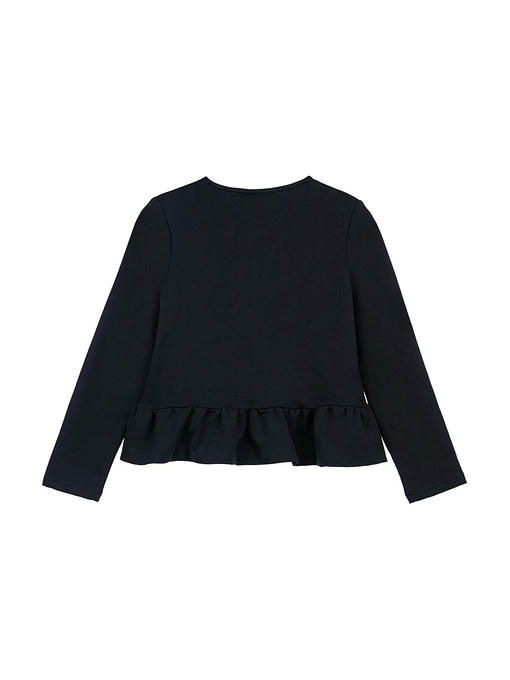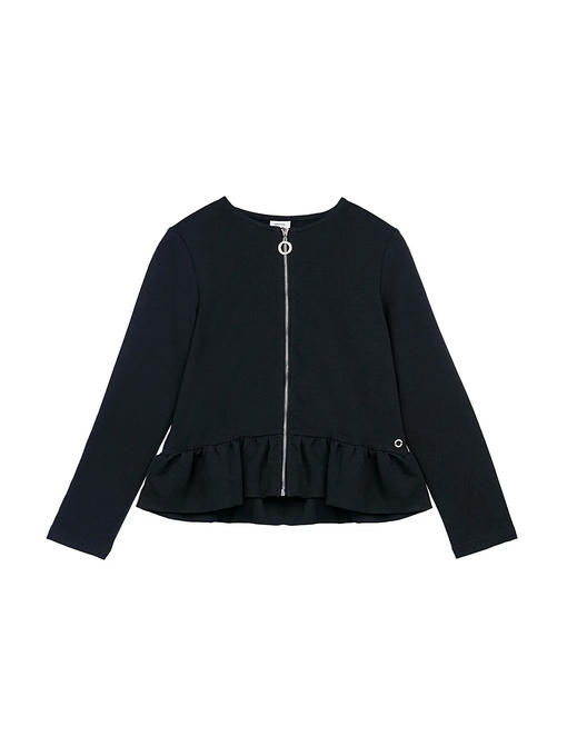 Жакет трикотажный прямого силуэта. Декоративная рюша по низу изделия. Застежка на молнию