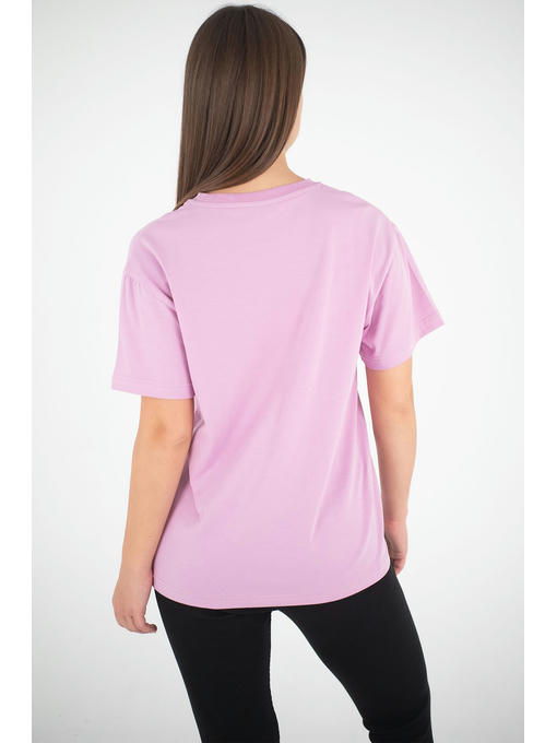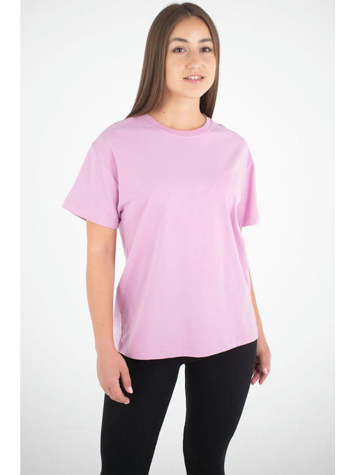 Однотонная женская футболка выполнена из мягкого трикотажа кулирная гладь с лайкрой. Сиреневая футболка классического кроя с круглым вырезом горловины понравится и женщине, и юной девушке.