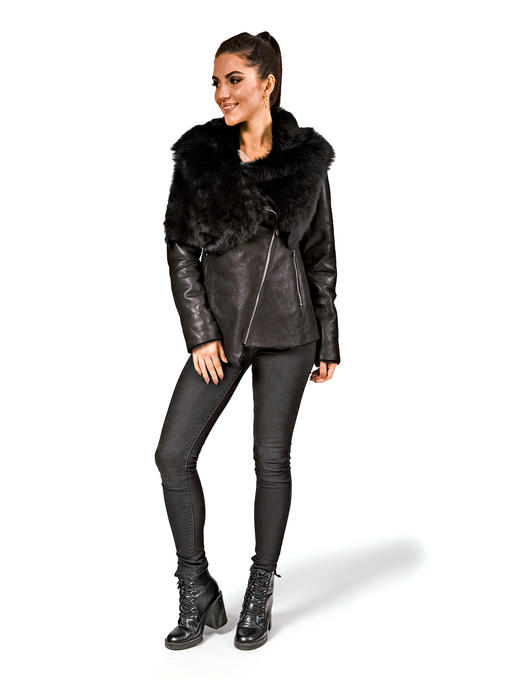 Уютная короткая женская дубленка с косой застежкой превосходно гармонирует и с любимыми джинсами, и с твидовой юбкой.Мягкий воротник-выполнен из меха тосканы. Косая застежка-молния придает модели динамичность и остроту.