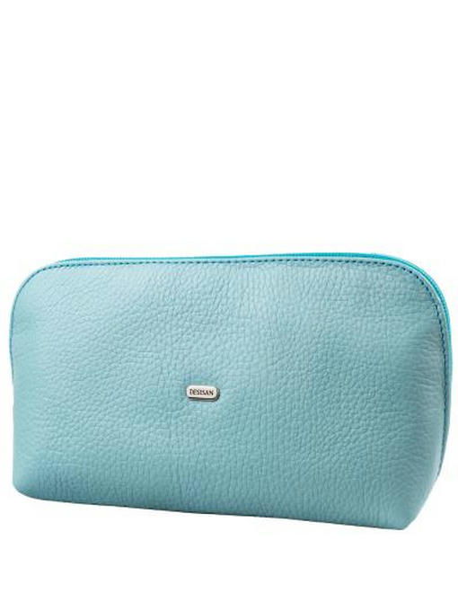 Женственность, романтичность, красота – столь прекрасные понятия словно закодировали дизайнеры торговой марки DESISAN в этой нежно-голубой косметичке. Однотонный аксессуар удачно объединяет утончённость, хрупкость образа и добротность. Высококачественная натуральная кожа с характерной крупнозернистой поверхностью – достойное визуальное подкрепление для такого изделия. Одновременно такой материал – гарантия прочности и долговечности. Фурнитура и фирменная эмблема добавляют светло-серебристые металлические штрихи. Крепкая молния позволяет широко раскрыть отделение с плотной тканевой подкладкой. Внутри имеется небольшой кармашек. Модель устойчива, хорошо держит форму