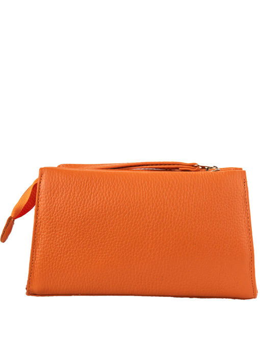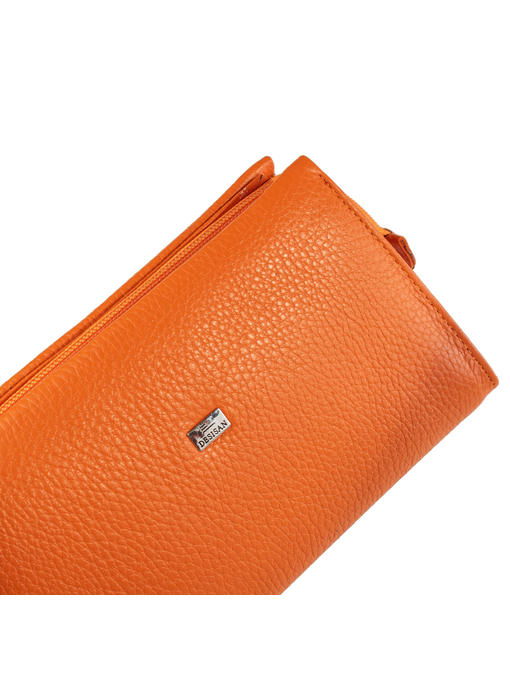 Оранжевый цвет высококачественной натуральной кожи с характерной зернистой поверхностью становится еще более оригинальным и очень привлекательным. Женская косметичка завораживает солнечной однотонностью, лаконичностью и богатством образа. Аксессуар торговой марки DESISAN станет ярким штрихом в Вашем гардеробе, будет поднимать настроение просто так – без повода. Впрочем, для женщины уход за собой и пользование косметикой всегда приятны, а стильный вид кожаной сумочки лишь усилит это ощущение. Трапециевидная форма с устойчивым ровным дном, крепкие отделочные строчки и надёжная молния, аккуратная внутренняя подкладка – модель удобна и долговечна