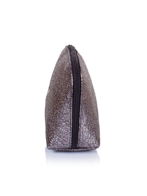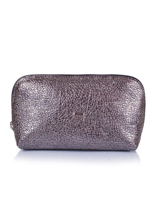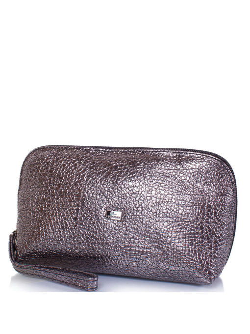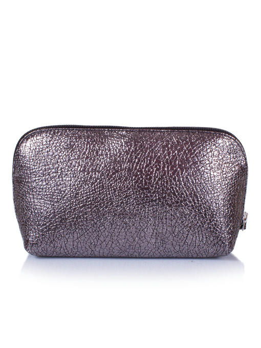 Блестящая серебром зернистая гладкая поверхность – такой набор характеристик впечатляет. Внешние данные этой косметички можно назвать выдающимися, ведь она просто сияет (при том, что изготовлена из добротной натуральной кожи). Под стать «космическому» дизайну форма аксессуара – обтекаемая, с четко очерченным силуэтом, с минимальным количеством швов. Дно устойчивое, что важно для владелицы – можно поставить футляр с косметикой на стол или другую ровную поверхность, и она не будет наклоняться, а значит, содержимое легко достать, ничего не потеряется. Длинная застежка-«молния» обегает плавную линию с одной нижней боковой точки до противоположной, широко раскрывая изделие при необходимости. Подкладочная ткань здесь – не маркая, внутри есть сподручный кармашек
