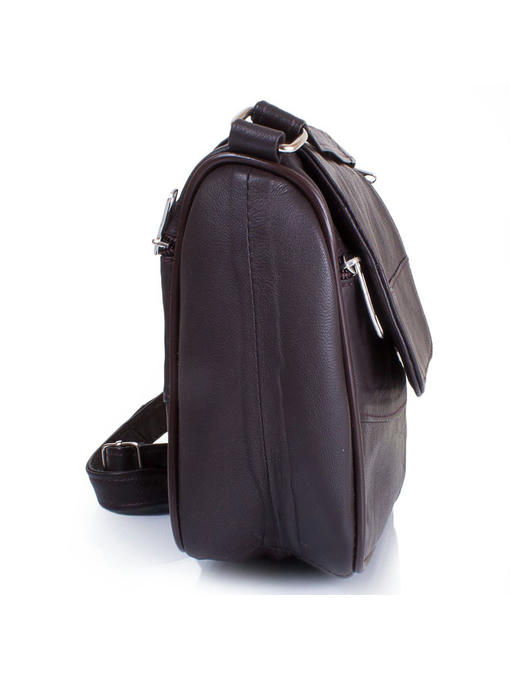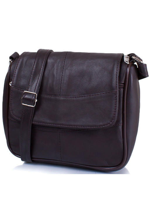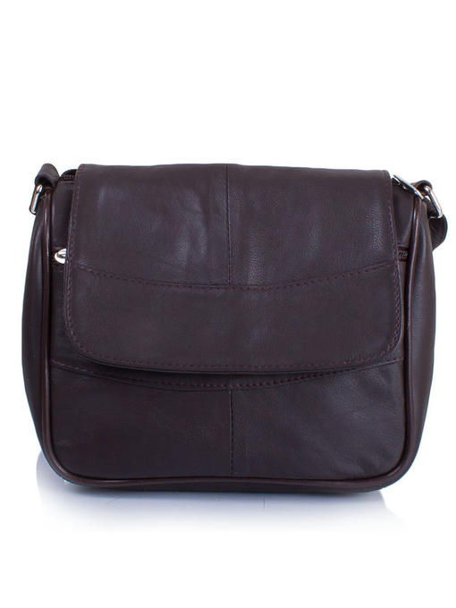 Сумка-почтальонка – желанный предмет в гардеробе женщины, и когда этот аксессуар изготовлен из натуральной кожи, ему нет цены. Причина – в удачном конструктивном решении модели и надежной сохранности содержимого, ведь клапан закрывает вход в основное отделение, а плечевой ремень позволяет не чувствовать поклажи. Размеры сумочки, представленной на этой странице нашего интернет-магазина, оптимальны для тех, кто ищет аксессуар больше клатча, но не громоздкий, компактный и вместительный. Миниатюрная почтальонка внешне скромна и сшита из эластичной кожи цвета темного шоколада. Соединения деталей тщательно отстрочены нитками в тон, и плотный кант, упрочняющий и защищающий наружный «рабочий» шов, тоже выдержан в этом оттенке, так что фурнитура серебристого цвета отлично оживляет образ