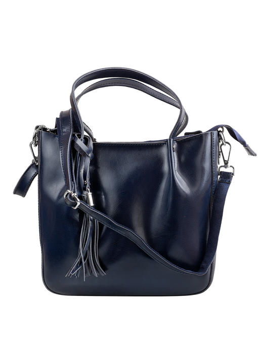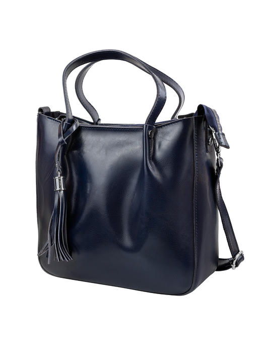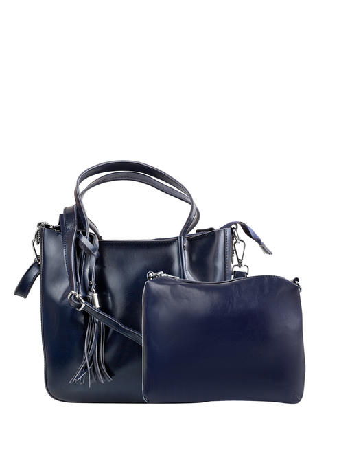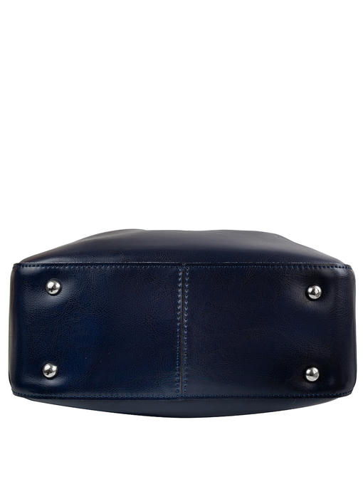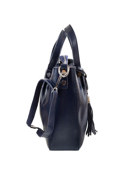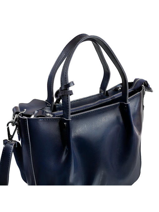 Синий цвет этой женской сумки привлекает неброской красотой и насыщенностью. Однотонный аксессуар и форме, вроде, ничем не выделяется, но выглядит выразительно. Точные линии швов, плавные скругления, ровные бока и плотное дно на ножках, глубокие складки-защипы с обеих наружных сторон – конструкция практичная, основательная, а внешний вид – женственный. Модель хороша также вкладышем-клатчем – он не маленький, внутри у него карманы, а пристежной ремень одинаково хорошо подходит и к основной сумочке, и к клатчу. Так что, покупая этот аксессуар, Вы получаете два предмета, которые можно при желании использовать по отдельности.