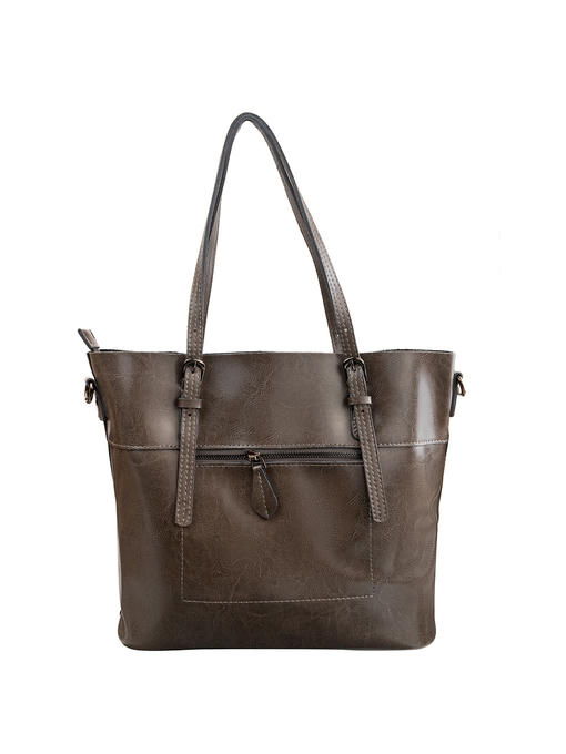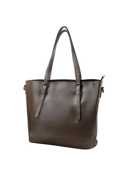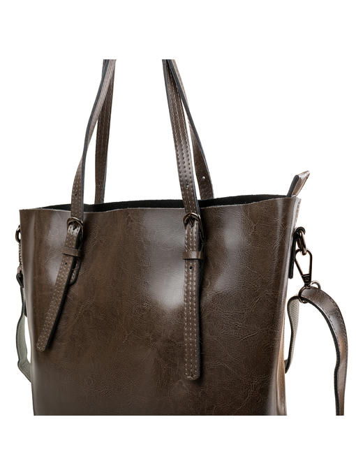 Коричневый всепогодный цвет, имитация внутреннего пространства без подкладки, сподручные ручки регулируемой длины – сумка-шоппер совмещает привычную простую форму со стильными и универсальными элементами образа. Устойчивая, на защитных ножках модель практична – вместительное отделение, плюс традиционные карманы; плотное дно; наличие пристежного ремня позволяют с лёгкостью и удовольствием включать её в повседневный гардероб. С такой сумочкой можно ходить на работу и в магазин, по делам или когда надо взять с собой папку с бумагами и еще массу нужных вещей. Высокое качество натуральной кожи, фурнитуры и изготовления обеспечит долгий срок службы сумки