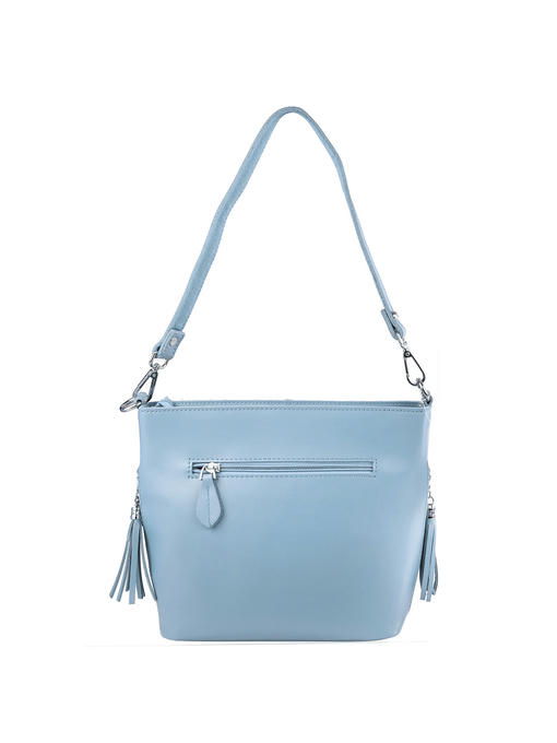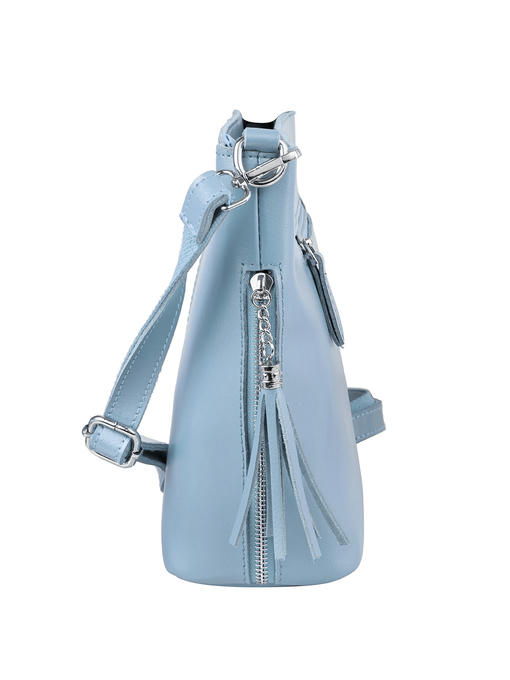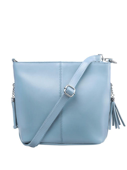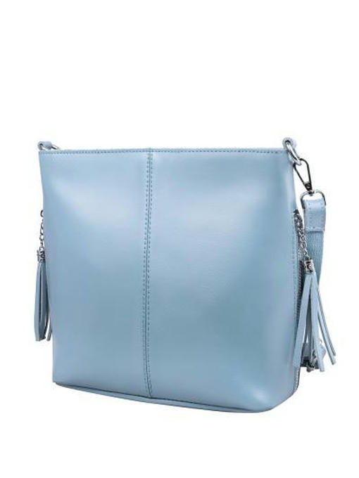 Нежно-голубого цвета сумочка – светлая и при этом эффектная часть гардероба девушки. Аксессуар добавит в каждый образ нотки романтичности и не останется без внимания. Эта модель выглядит элегантно благодаря не сложной форме и лаконичному дизайну. В его основе – гладкая, с лёгким матовым отсветом поверхность натуральной кожи и сдержанная одноцветность. Материал красиво подчёркивает сглаженные углы без соединительных швов, завораживает чистотой. Конструкция изделия удобна наружными карманами, устойчивым уплотнённым дном, пристежным ремнём. Декор стильного ридикюля в виде брелоков-кисточек на бегунках молний прорезных боковых кармашков и светло-серебристой металлической фурнитуры деликатно вписан в ансамбль. Высокое качество изготовления – достойный для него «фон».