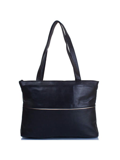 Сумка на все времена! Натуральная кожа и проверенная временем конструкция делают свое дело. Повседневный, рабочий характер аксессуара определяют размеры, форматная прямоугольная форма, а удобство обеспечивают удлиненные ручки. При этом в образе достаточно женственности и тонко подчеркнутой элегантности: плавными линиями создается эффект многослойности изделия, горизонтальная светлая полоска посередине вносит изящное оживление. Носить такую помощницу легко и приятно, разложить вещи в отдельные отсеки не представляет труда, а внешние дополнительные отделения на магнитных кнопках предназначены для супербыстрого использования