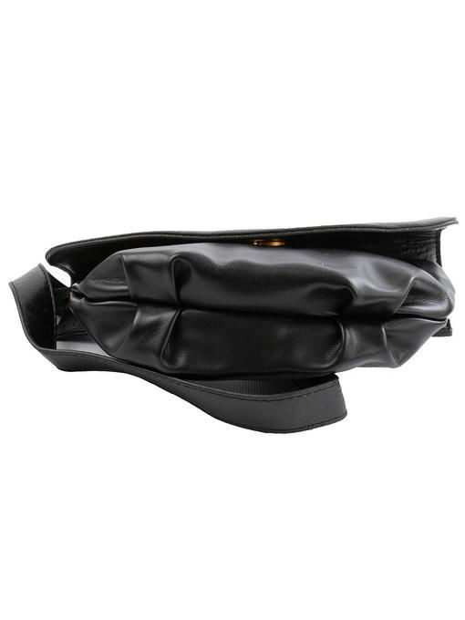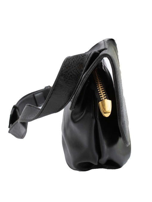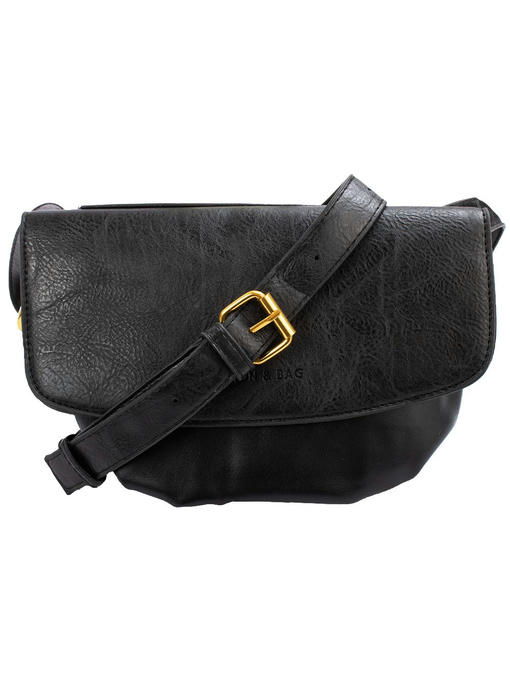 Интересное конструктивное решение для поясной сумочки нашли дизайнеры торговой марки VALIRIA FASHION. Данная модель выделяется в традиционном ряду аксессуаров, которые носят на поясе, большим клапаном и глубокими складками в нижней части. Мягкая конструкция приобретает своеобразную форму, заменитель кожи, из которого изготовлена сумка, заметно влияет на это. Закрывается изделие под клапаном на магнитных кнопках молнией с металлическими ярко-золотистыми зубцами, которые добавляют звучных акцентов чёрной однотонной модели. Разделение на два отсека и наличие кармана-перегородки позволит разложить содержимое наиболее удобным для Вас способом. Ремень здесь не широкий, он регулируется по длине с помощью открытой пряжки с язычком