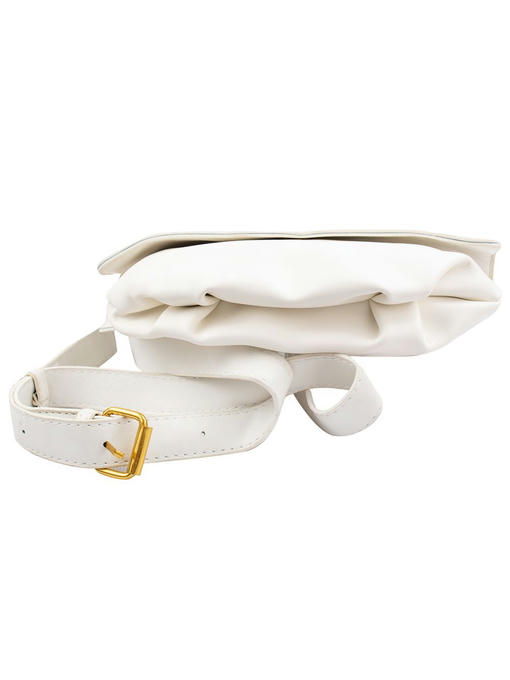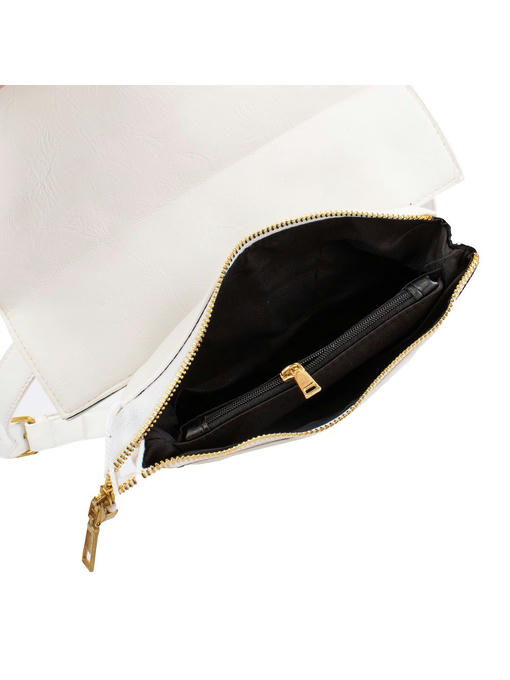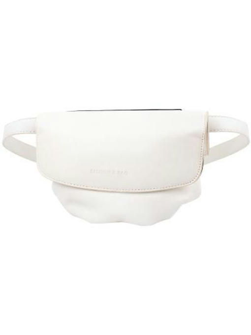 Белая оригинальная сумочка на поясе будет стильным дополнением женского гардероба. Аксессуар торговой марки VALIRIA FASHION изготовлен из качественного заменителя кожи, выглядит женственно, привлекает не совсем обычной формой. Характер изделия определяет большой клапан, который надёжно закрывает верх и большую часть лицевой стороны. Пряжка на ремне и молния с металлическими зубцами добавляют светлому аксессуару яркий золотистый блеск. Основная часть сумки выполнена с глубокими складками, идущими снизу, они определяют и хорошую вместимость компактного аксессуара. Нежная и практичная поясная сумка – красивая и удобная. Внутри она разделена на два отделения, имеет карман-перегородку. Качество материалов и изготовления заслуживают высокой оценки. Цена удивляет доступностью