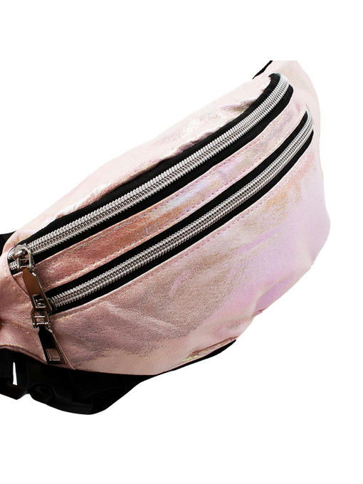 Светлый, умиротворяющий розовый цвет становится игривым и радостным благодаря перламутровым переливам света на поверхности заменителя кожи, из которого изготовлена эта поясная сумочка. Материал подобран удачно, он всепогодный и обеспечивает красоту аксессуара, который в силу своей конструкции привнесёт в образ спортивные нотки. Сумка-бананка становится женственной в исполнении торговой марки VALIRIA FASHION. Модель с вместительным отделением и широким карманом на лицевой стороне выглядит стильно, чёрно-серебристые линии молний подчёркивают устройство, дают образу контрастность наряду с ремнём. Мягкая сумка комфортна для ношения на поясе. Швы изделия прострочены надёжно, внутри аксессуар отделан подкладкой