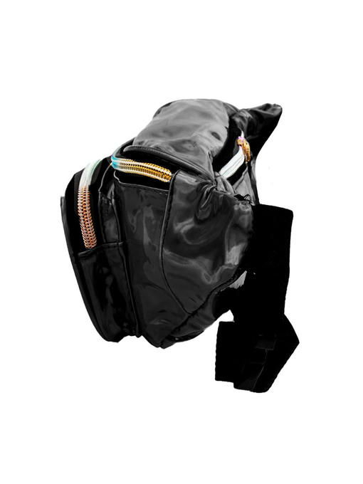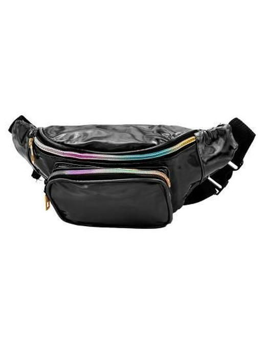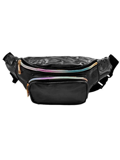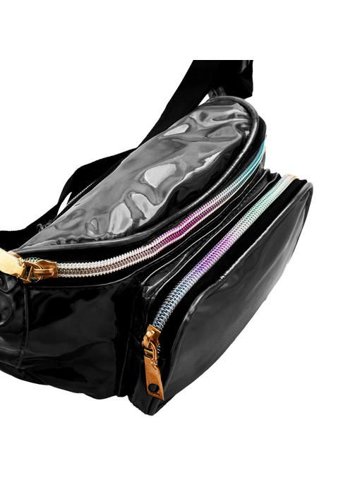 Чёрный цвет, сохраняя высокую универсальность для гардероба, становится в этой поясной сумочке эффектным элементом образа. За это отвечает заменитель кожи с переливающейся на свету поверхностью, а также разноцветно-радужные линии застёжек-молний и фурнитура под золото. Аксессуар торговой марки VALIRIA FASHION выглядит модно и достаточно эффектно, чтобы выразительно дополнить любой ансамбль. Модель подходит к любому времени года, она не будет акцентировать на себе максимум внимания, но и не останется незамеченной. Сумка на пояс удобна в различных ситуациях, форма её комфортна для ношения с разной одеждой. Швы проложены крепкими нитями, линии, по которым вшиты молнии, усилены отделочными строчками, наружные рабочие контуры окантованы